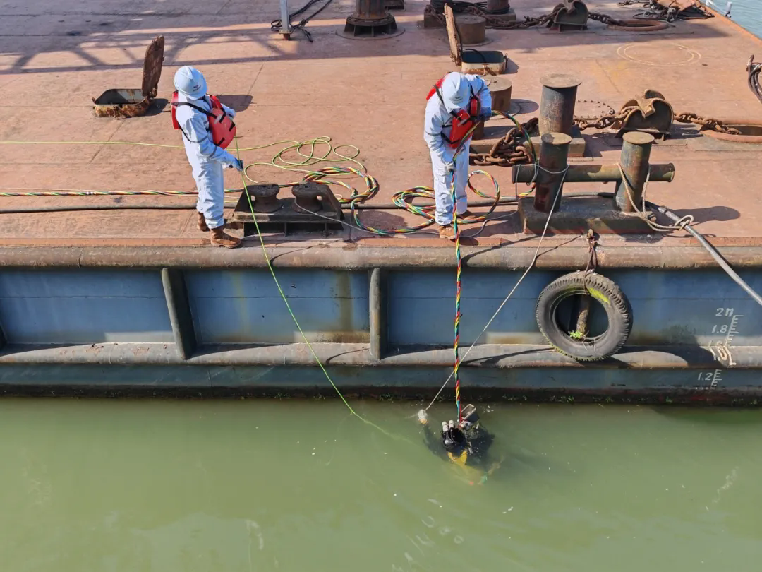 面對傳統(tǒng)躉船塢內(nèi)檢驗需停機7天以上、費用超15萬元的情況,公司主動破局,聯(lián)合中國船級社宜昌分社論證確認(rèn)水下檢測完全符合《內(nèi)河浮動設(shè)施檢驗規(guī)則》中“水下檢驗可替代塢內(nèi)檢驗”的政策要求。11月24日,檢測團(tuán)隊運用水下攝像系統(tǒng)與精密設(shè)備,對船體水下部分開展全面檢測,同步記錄影像確保數(shù)據(jù)精準(zhǔn)。項目總費用僅4.76萬元,較傳統(tǒng)模式節(jié)約成本超10萬元,更實現(xiàn)“零停產(chǎn)”目標(biāo),保障港口生產(chǎn)高效運轉(zhuǎn)。