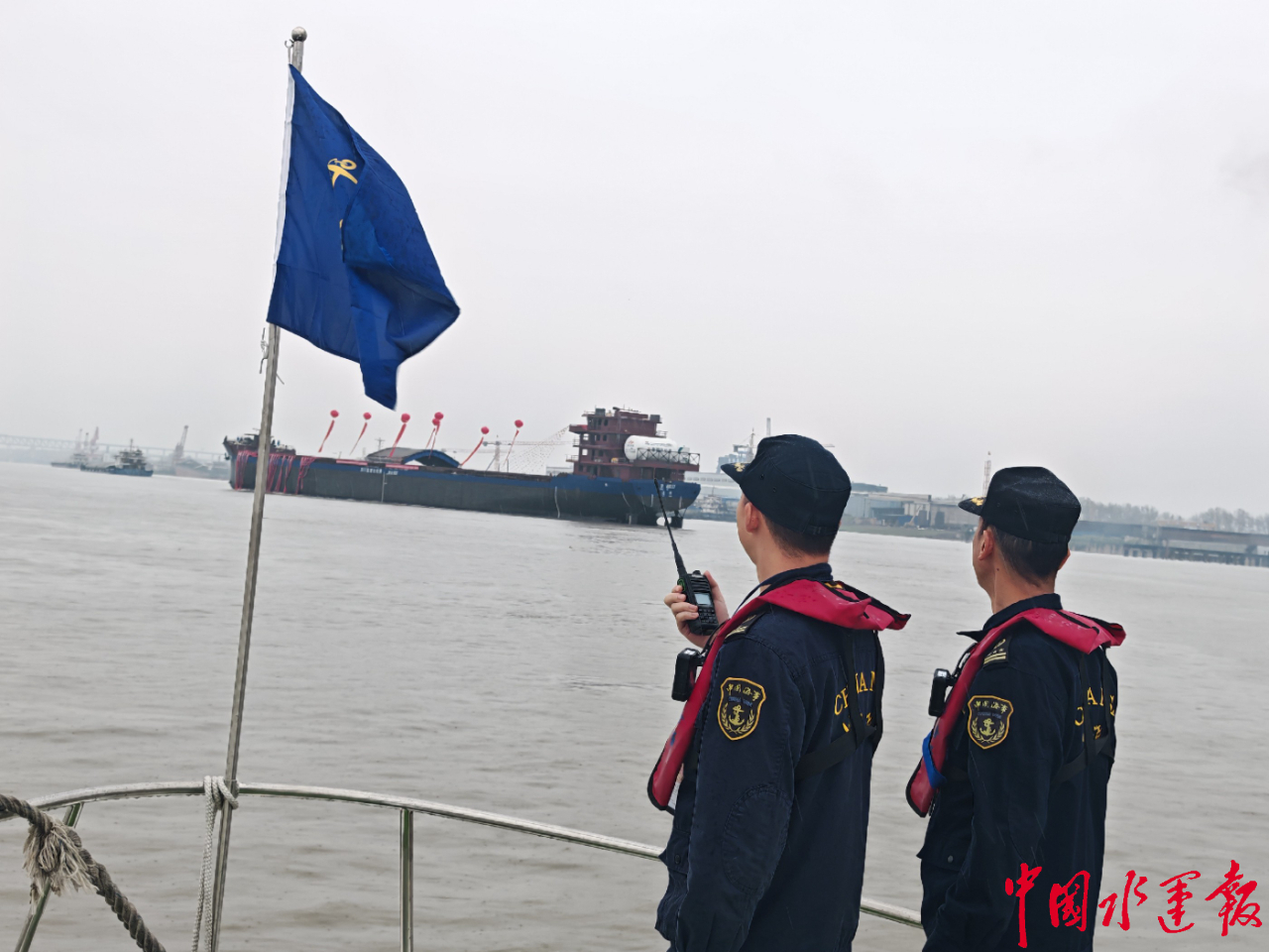 長(zhǎng)江海事護(hù)航萬(wàn)噸級(jí)LNG動(dòng)力船“華渝集06”輪吉水。